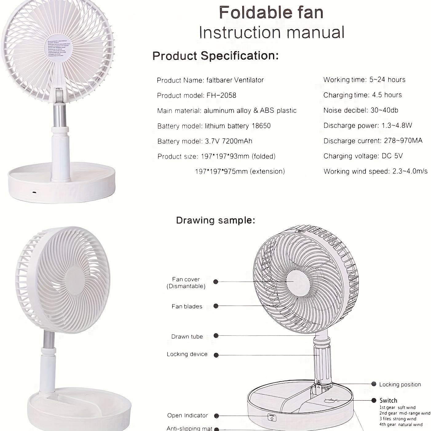 1 Pack Rechargeable Portable Fan with Adjustable Height, 4 Speed Settings & Retractable Oscillation - USB-Powered Indoor/Outdoor Cooling Fan for Home, Office, Camping, Travel - Lightweight Durable Plastic Design, Multispeed C