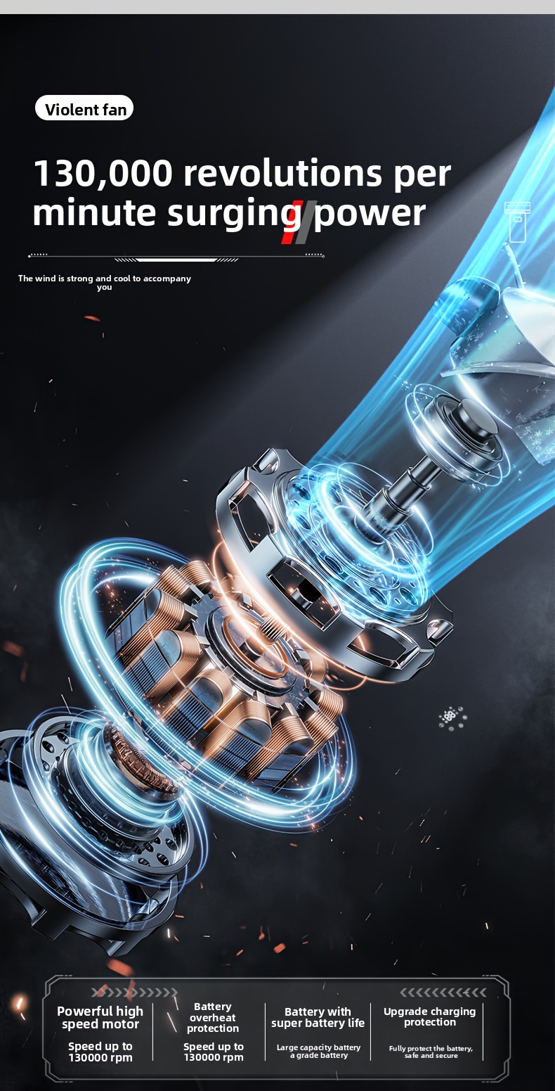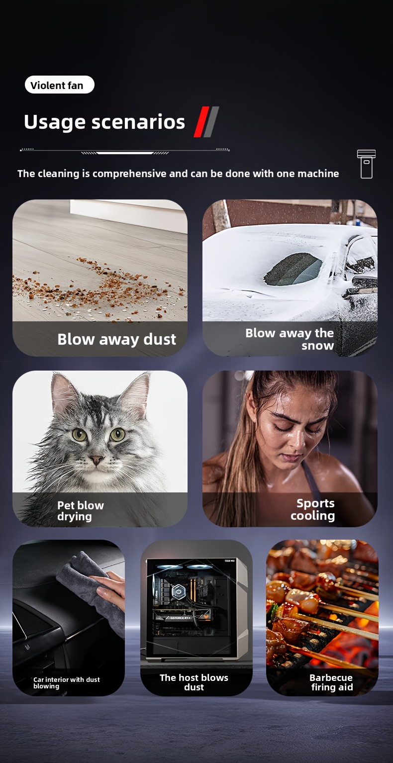 200W High-Power Portable Turbofan Fan with 155km/h Airflow, 6000mAh USB Rechargeable Battery, Ergonomic Handle & Compact Design for Camping, Car, Computer Cleaning, Dust/Snow Removal - Indoor/Outdoor Use, Portable Fan, Campin