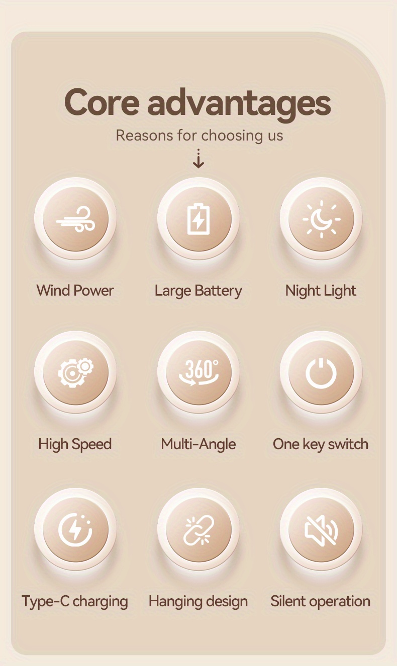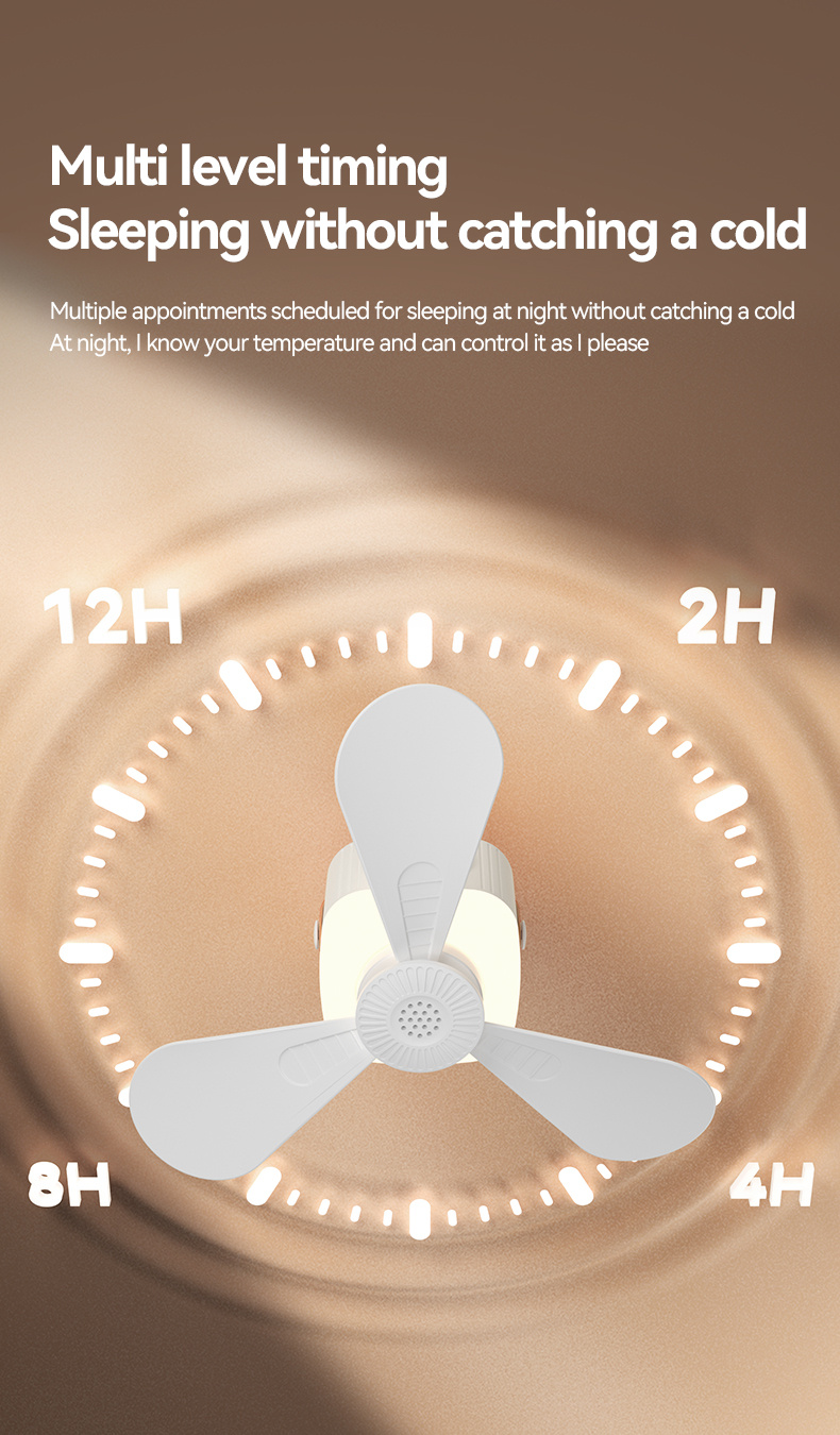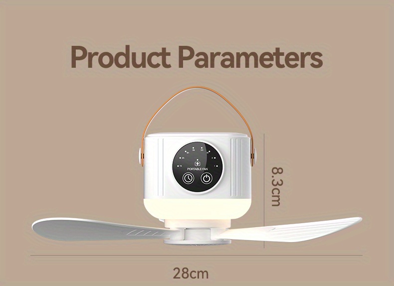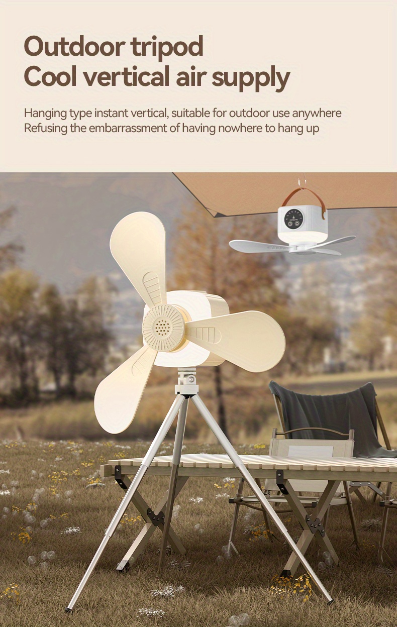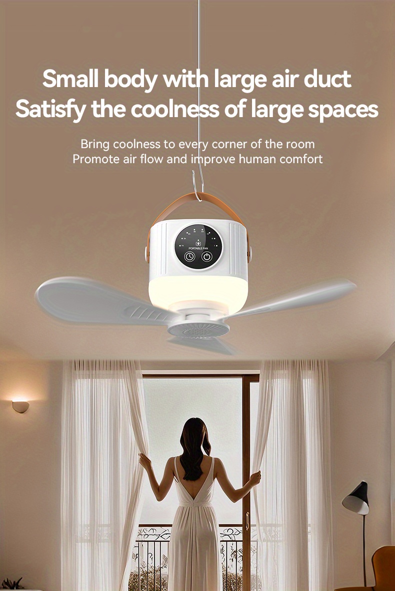 Remote Control Camping Fan with LED Night Light - Rechargeable USB Portable Fan for Tent & Outdoor, 270° Rotation, 3 Light Modes, Sleep Timer, Hanging Hook